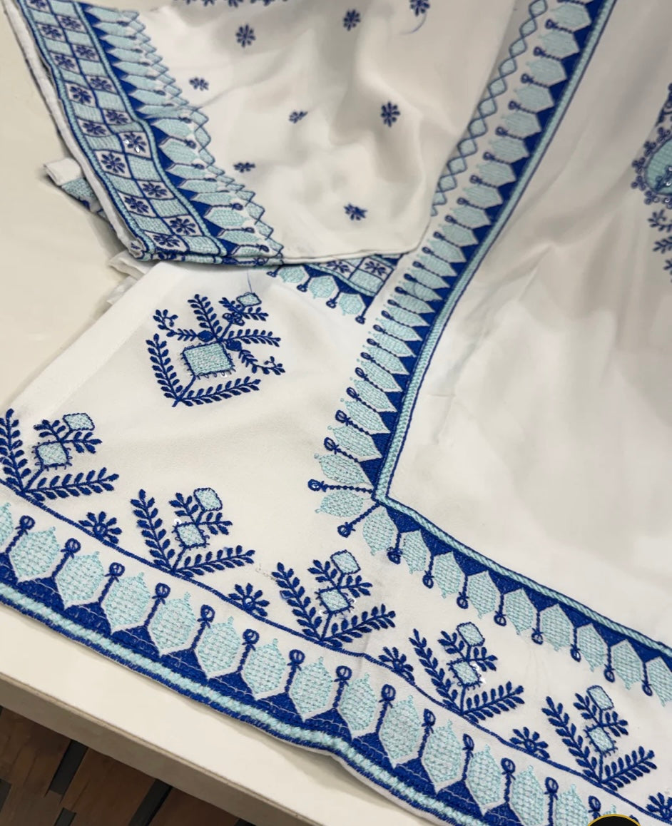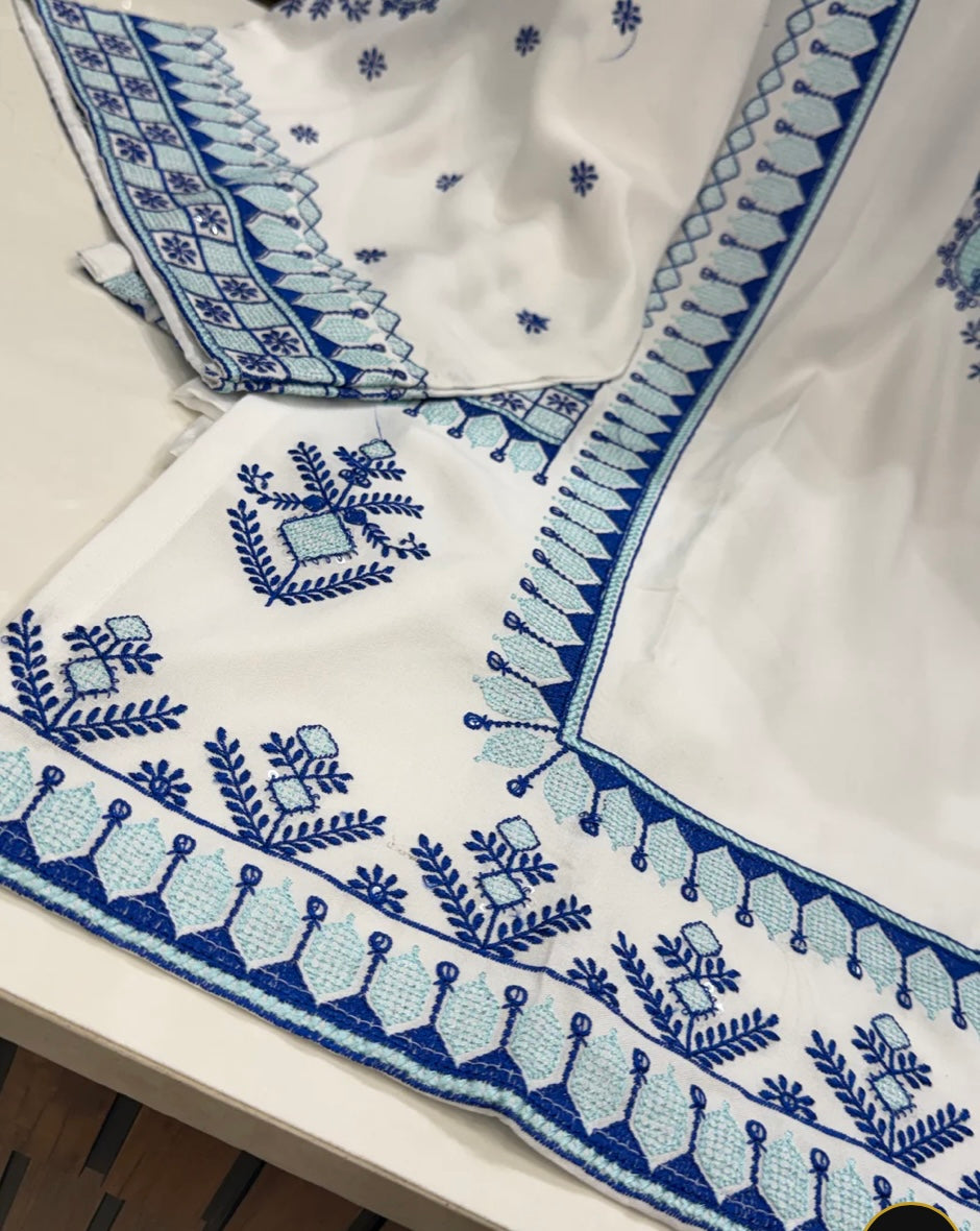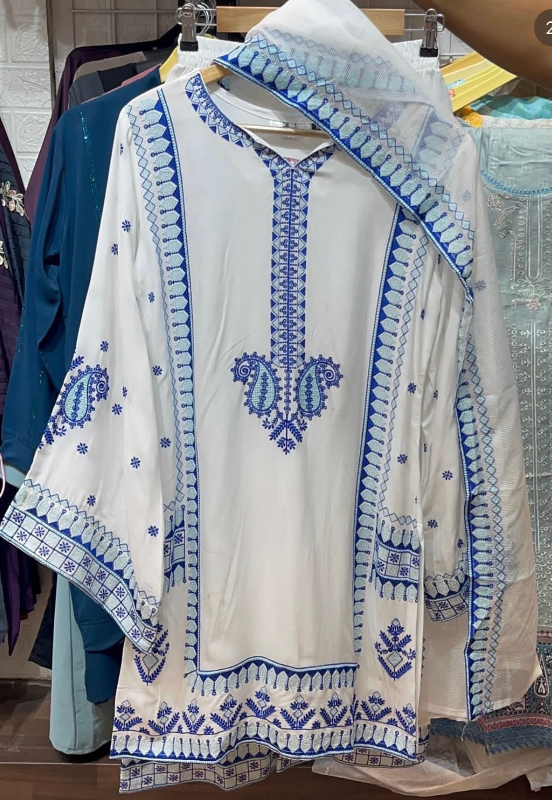 Introducing our White Embroiderd Three-Piece Set – a fusion of elegance and modern sophistication. Crafted from luxurious Organza and Malai Crepe, this stunning ensemble is designed to make you shine. Available in sizes Small, Medium, Large, and X-Large, it’s the perfect choice for any special occasion or evening event.