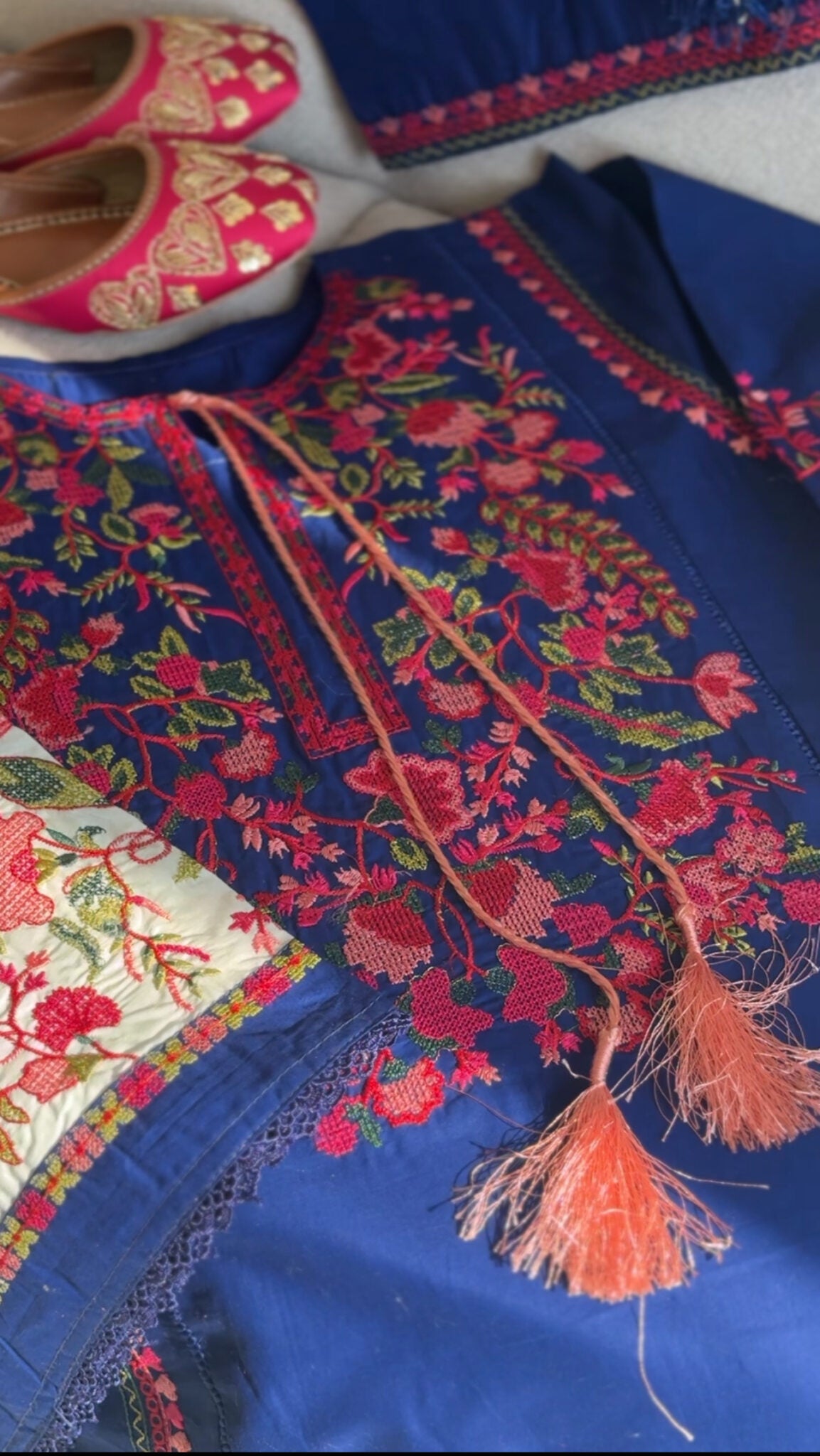 3. Embroidery: Intricate embroidery all over the shirt, shalwar, sleeves, neck, daman, and pancha